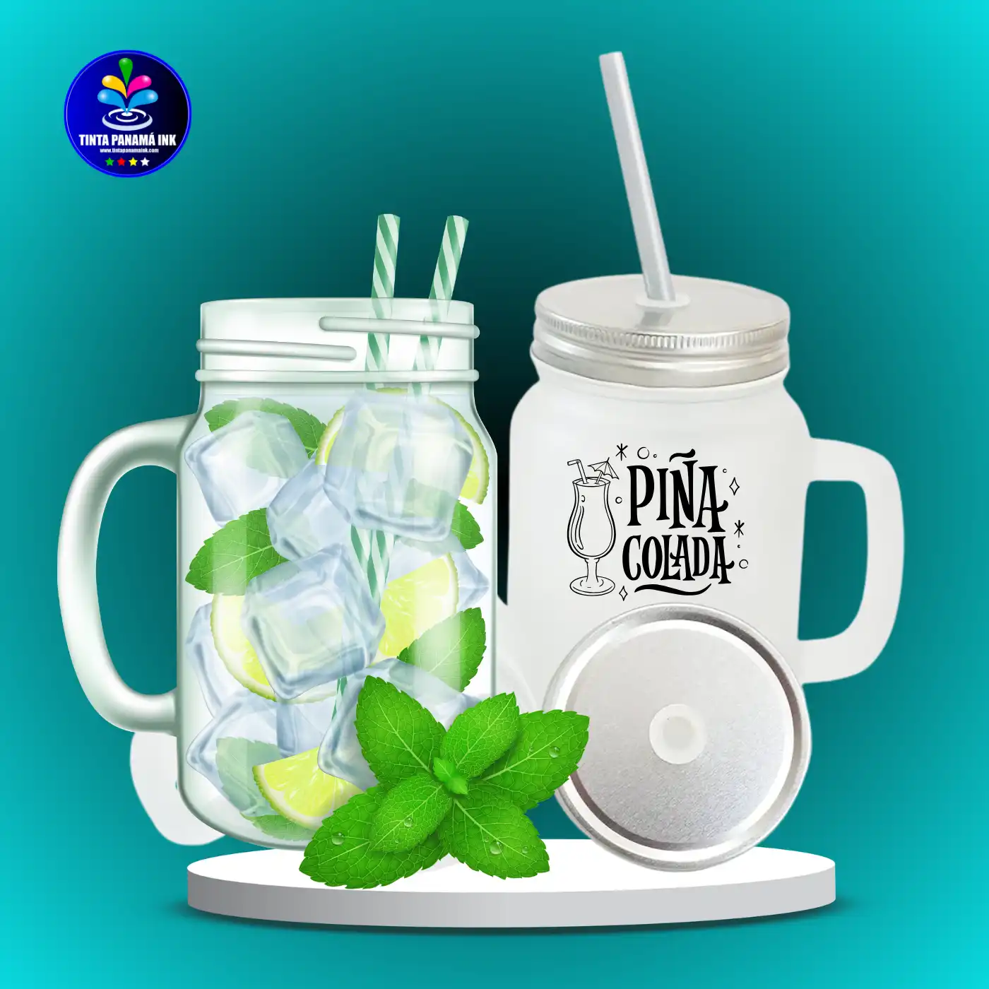 Sublimación: Es el uso más común. Muchos Mason Jars esmerilados vienen con un recubrimiento especial de poliéster que permite transferir diseños a todo color mediante calor.
