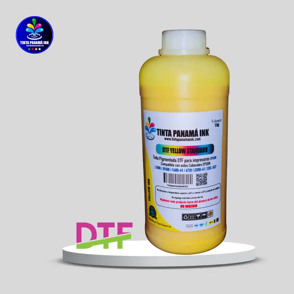 Nuestras Tintas DTF Yellow Premium son compatibles con cabezales EPSON: FORMATO A4: L800 FORMATO A3: L1800. GRAN FORMATO: / i1600-A1 / XP600 / 4720 / i3200-A1 / DX5 / DX7 y más.