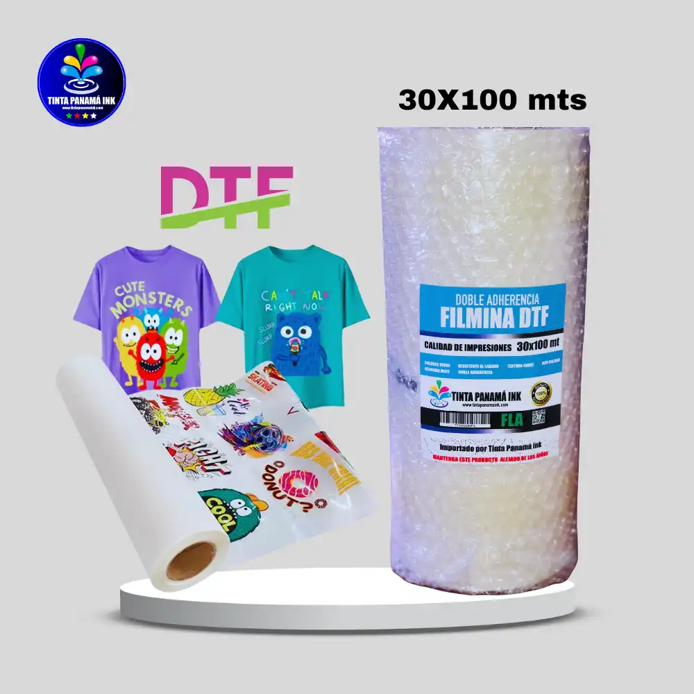- Composición y Función: Son tintas pigmentadas, y el proceso DTF utiliza colores CMYK más tinta blanca para crear un diseño sobre una película especial (film), al que luego se le añade un polvo adhesivo antes de transferirlo a la tela con calor.
